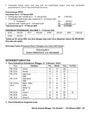 Total penerimaan per 8 – 15 Februari 2024 : Rp 12.816.000,-