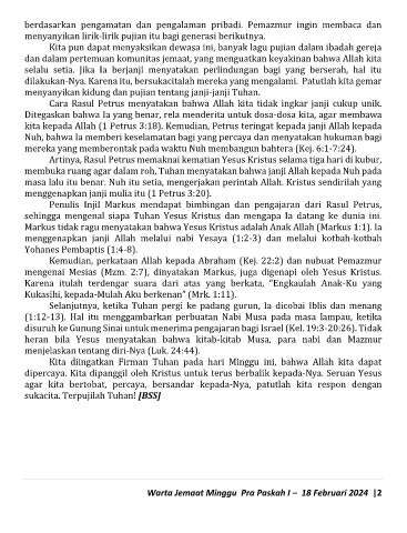 Warta Jemaat Minggu Pra Paskah I – 18 Februari 2024 |2