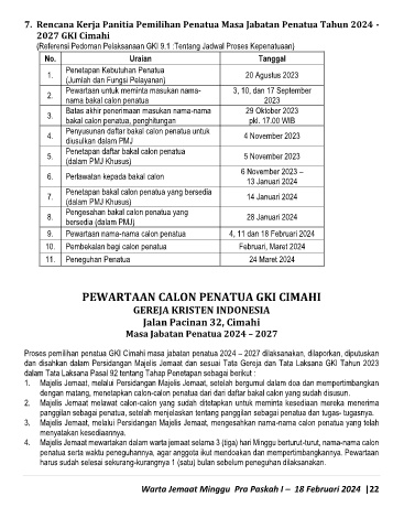 7. Rencana Kerja Panitia Pemilihan Penatua Masa Jabatan Penatua Tahun 2024 -