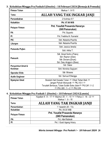 Warta Jemaat Minggu Pra Paskah I – 18 Februari 2024 |6