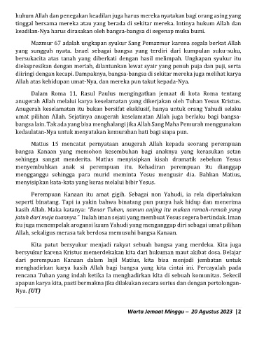 Warta Jemaat Minggu – 20 Agustus 2023 |2