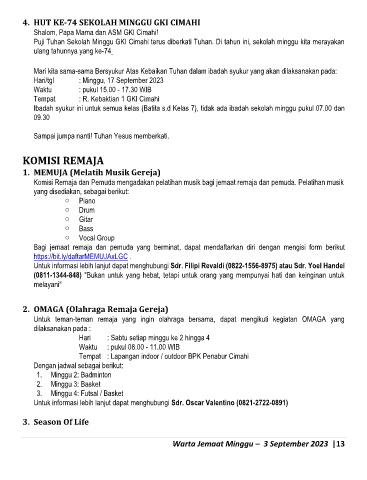 Warta Jemaat Minggu – 3 September 2023 |13