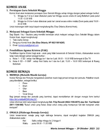 Warta Jemaat Minggu – 29 Oktober 2023 |12