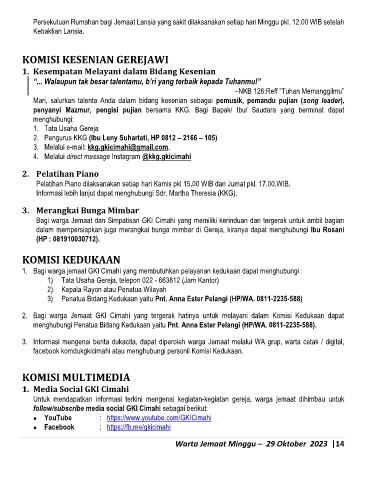 Warta Jemaat Minggu – 29 Oktober 2023 |14