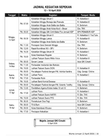 Pkl. 16.30 Kebaktian Minggu Umum III R. Kebaktian I