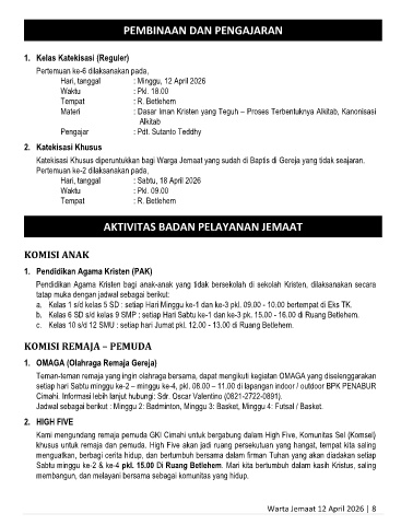 AKTIVITAS BADAN PELAYANAN JEMAAT